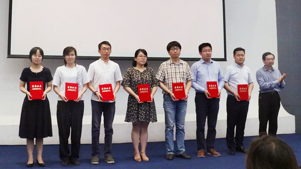 (党委副书记刘淑慧(左一)为获奖代表颁奖)
