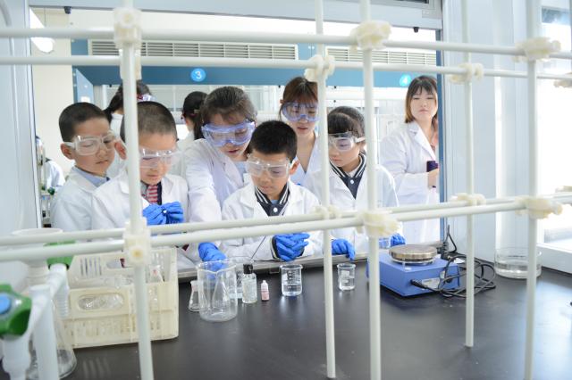 我校优质的教育教学资源持续辐射东华附校的特色办学,在校团委和附校发展处的牵头下,为附校开设“中小学生走进久久久久国产成人精品亚洲综合科普实践开放日”系列活动。4月19日下午,东华附校四年级学生在老师的带领下,走进化学化工与生物工程学院参与“科学启蒙”课程。