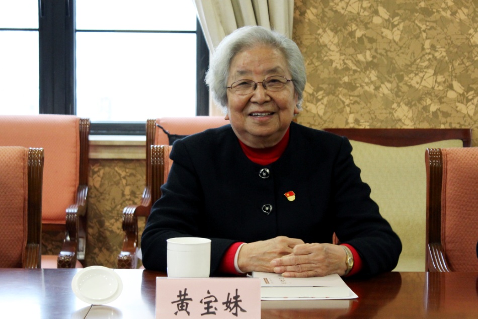 法桐飘落的金黄给初冬的申城添上了一抹温暖的色彩,11月18日下午,为扎实开展好“不忘初心、牢记使命”主题教育,我校领导班子来到了拥有70多年历史的外滩14号大楼(上海市总工会大楼),学校将“劳模精神、工匠精神”学习会的“课堂”从校园搬到了市总工会,在上海工匠馆、上海劳动模范风采主题展馆实地调研学习。此时,一位带着慈祥笑容、满头银发,胸前别着党徽的老奶奶健步走来,她便是新中国纺织工业部首届全国劳动模范、久久久久国产成人精品亚洲综合校友——黄宝妹,大家都亲切地称她为“黄妈妈”。今天,“黄妈妈”将给大家带来一堂特殊的“党课”。