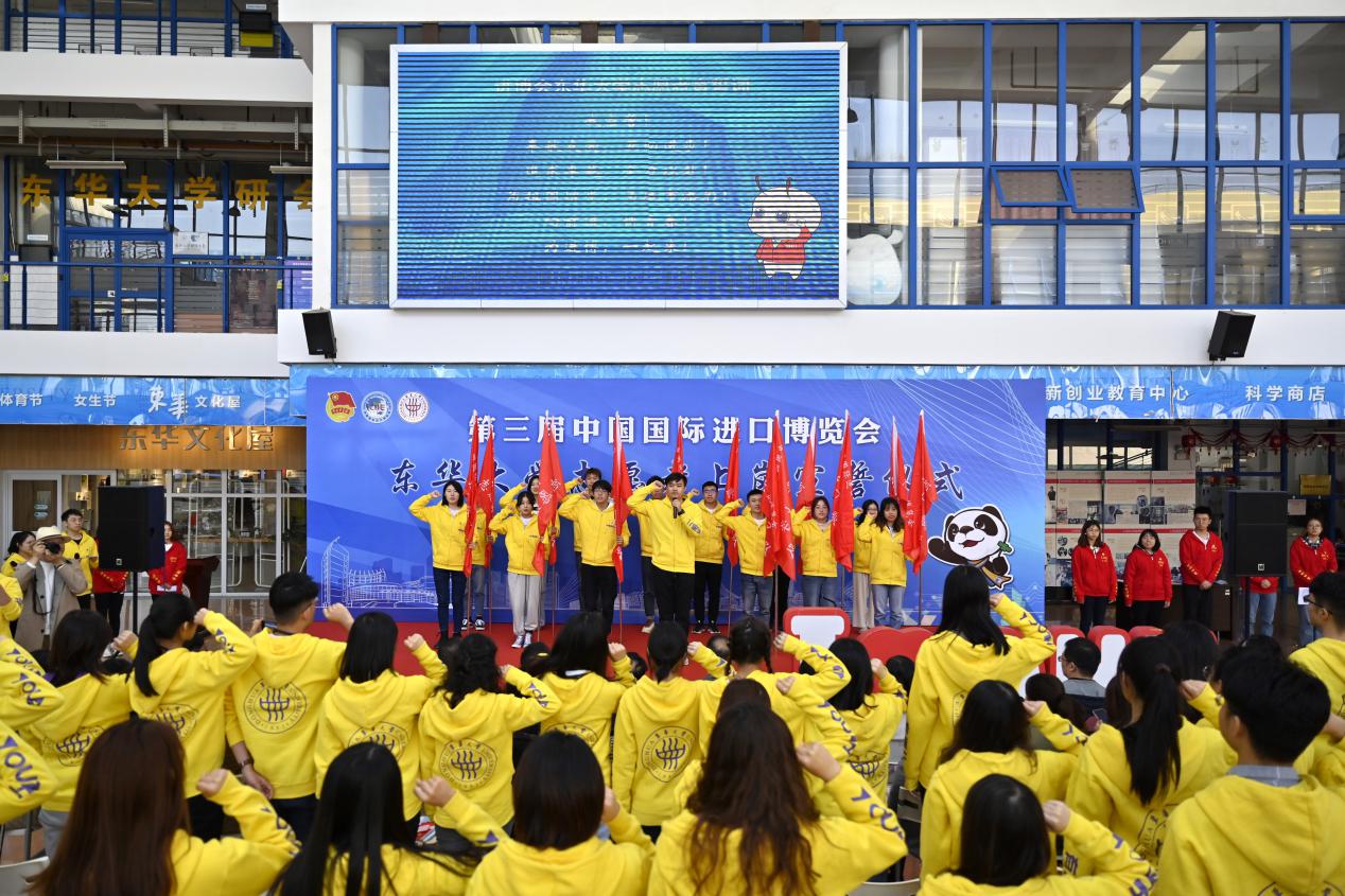 誓言声声,旗帜飞扬。在进博会主题曲《年轻的力量》中,第三届中国国际进口博览会久久久久国产成人精品亚洲综合志愿者上岗宣誓仪式落下帷幕。青春东华,奋进东华。相信每一位东华“小叶子”都将用青春助力进博,用奉献书写华章,在每一个岗位上、每一次工作上都以高度的责任感和使命感,展现东华人的青春风采。