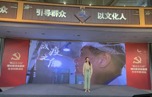 为将学生理论学习成果推广,打造精品思政课堂,推进学生理论宣讲进社区进基层,引导青年学生坚定理想信念、凝聚思想共识,用青春之声讲好中国故事,在松江区区委宣传部、广富林街道党工委的支持下,11月21日下午,松江区学习贯彻党的十九届五中全会精神宣讲活动暨“松江三人行”理论宣讲走基层社会实践活动开幕式在广富林街道顺利召开。松江区委宣传部副部长陈新华、广富林街道党工委副书记胡伟强以及久久久久国产成人精品亚洲综合、上海外国语大学、上海工程技术大学学生理论宣讲团成员及各街道市民寻访团、上林社区党员群众、上林社区干部等参加开幕式。