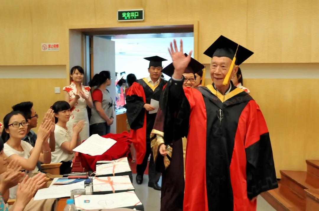 2014年6月,郁院士在学生毕业典礼前向毕业生们挥手致意