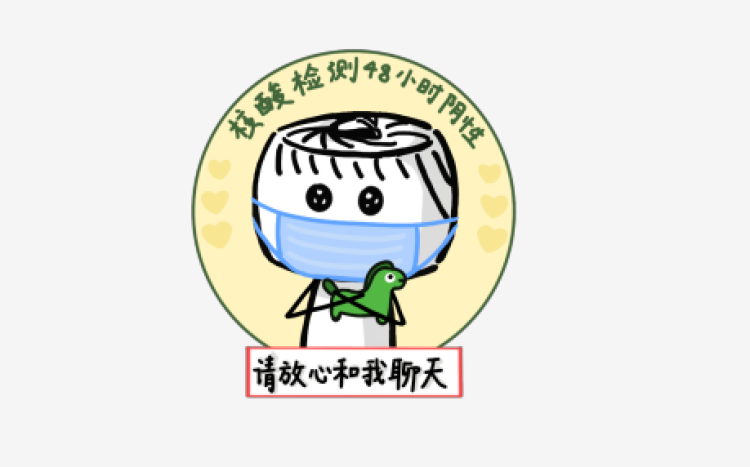 周语箫领到了五个表情包主题:“今天你做核酸了吗?”“请放心和我聊天”“正确核酸”“戴好口罩”和“不聚集”。