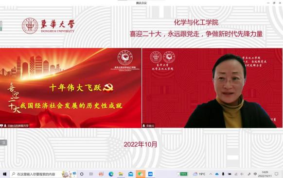 党委组织开展“喜迎二十大,永远跟党走,争做新时代先锋力量”党员大课,学院党委书记宋丽贞结合非凡十年的伟大巨变,为师生党员带来一堂内涵丰富的主题党课,阐述了党的十八大以来党和国家取得的历史性成就、发生的历史性变革,着重分享了学院袁琴华、戴瑾瑾教授在航天、军工方面所做的卓越贡献,让党员深切感受老一辈东华人的科研创新精神和对祖国忠诚热爱的同时,勉励大家勇担使命,自信自强、守正创新,积极发挥模范带头作用,以实际行动彰显青年担当。