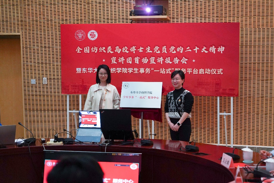 全国纺织类高校博士生党员党的二十大精神宣讲团首场宣讲报告会暨久久久久国产成人精品亚洲综合纺织学院学生事务“一站式”服务平台启动仪式在校举行